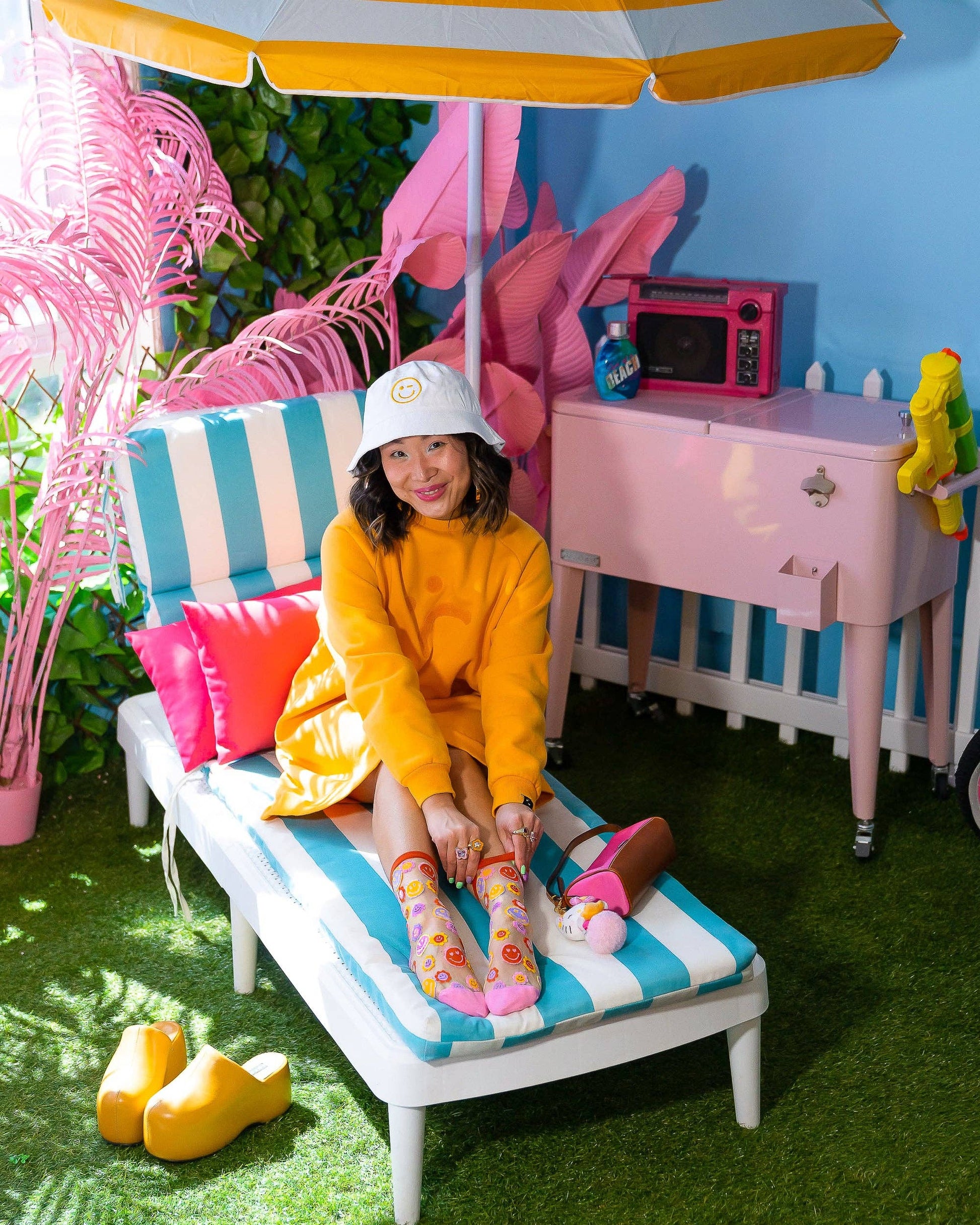 Des visages souriants accrocheurs aux couleurs pastel sont garantis pour rendre vos pieds heureux. Nous avons ajouté des détails funky avec des pétales de marguerite et des yeux en forme de cœur, faisant de cette chaussette transparente à visage souriant une chaussette de mode pas basique. Fini avec un bout et un talon roses pour un maximum de gaieté.