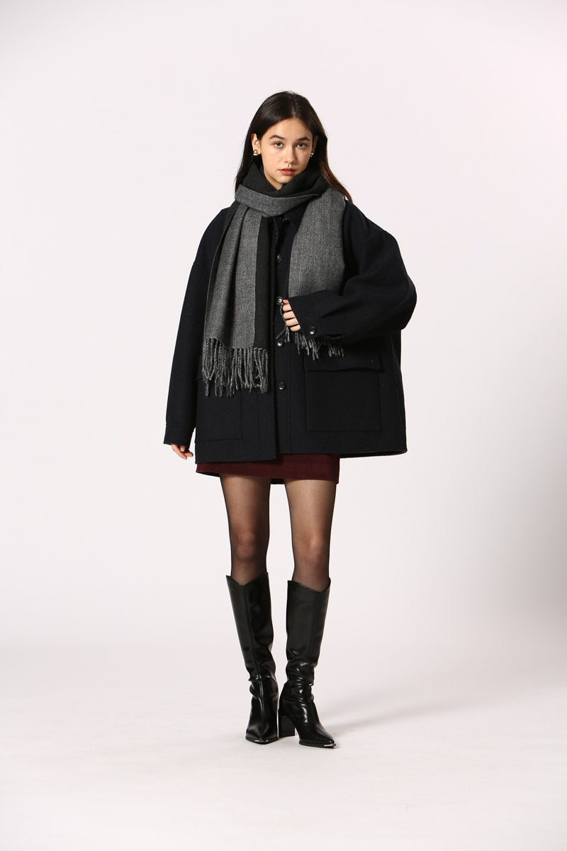 Eloise Noir bordeaux - Longue écharpe chaude avec franges