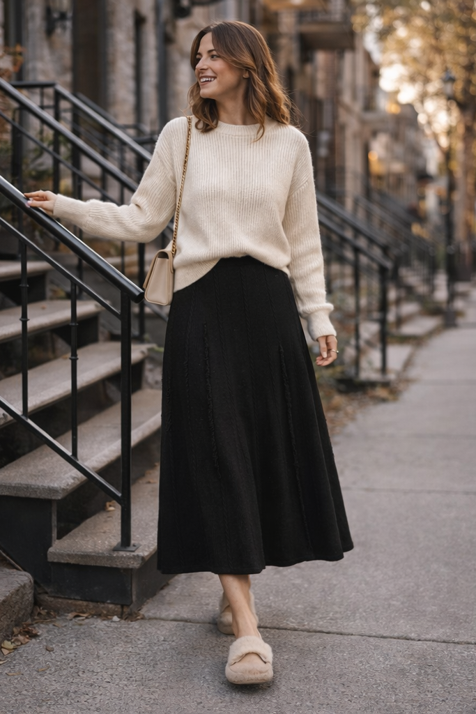 Parfaite pour une tenue casual élégante, une journée au bureau ou une sortie en ville, elle s’accorde aisément avec un pull oversize, un col roulé ajusté ou une chemise fluide, ainsi qu’avec des bottes, sandales ou ballerines selon la saison.